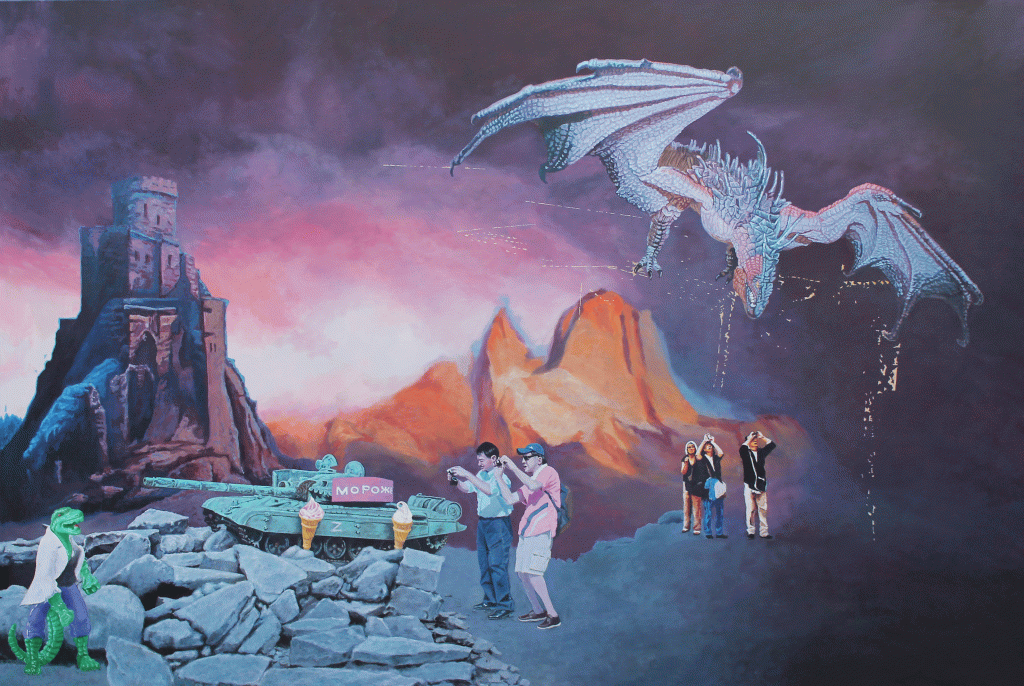 The God bomb – Katechon oil on canvas 56cm x 86cm 2021
