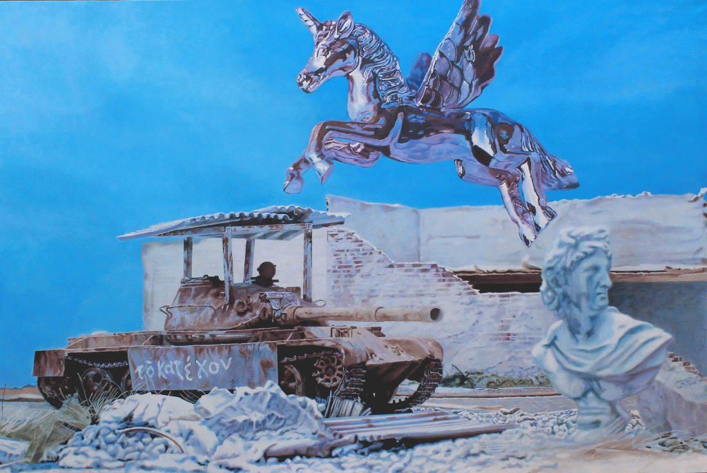 Only a god can save us oil on canvas 120cm x 150cm 2023